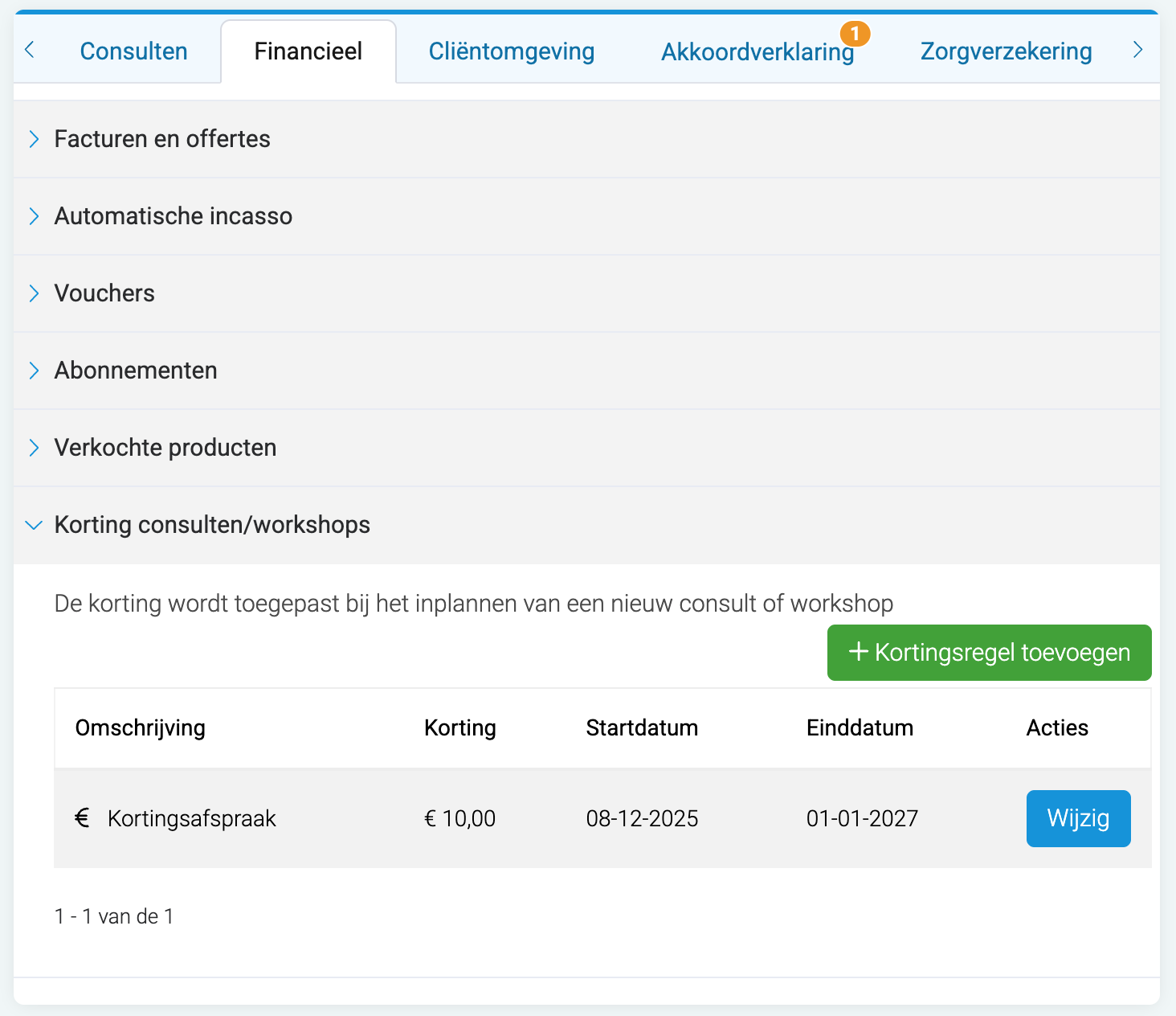 Je kunt ook per cliënt een vaste korting instellen voor consulten en workshops.
