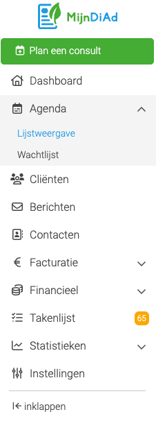 - Klik in het linkermenu bij 'Agenda' op het pijltje